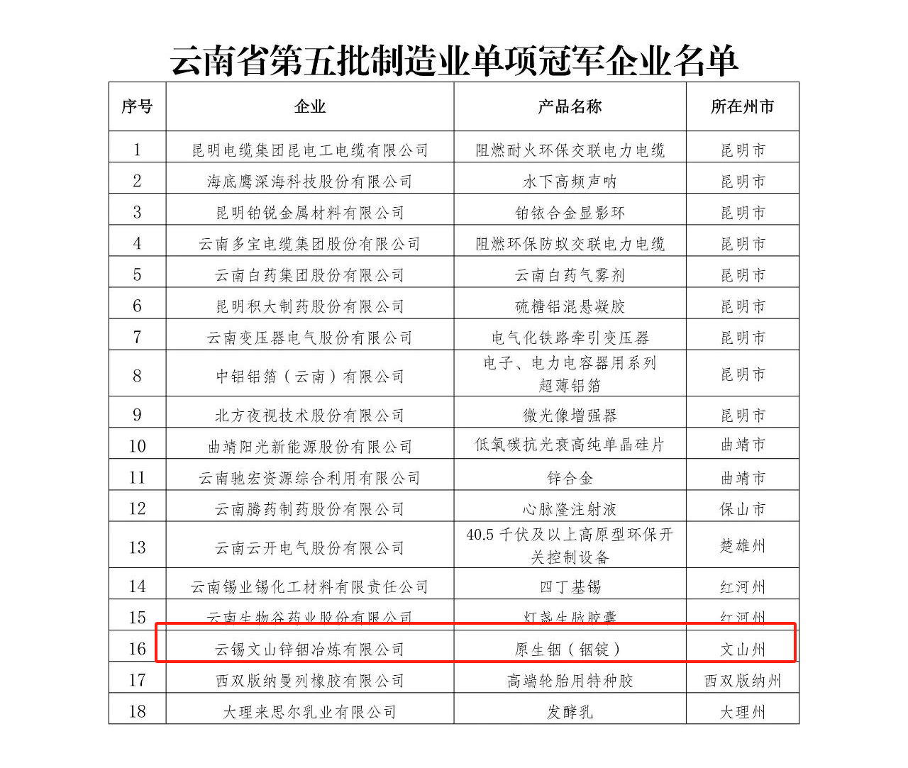 1月9日,云南省工業(yè)和信息化廳正式公布了“云南省第五批制造業(yè)單項(xiàng)冠軍企業(yè)名單”,文山鋅銦憑借在主導(dǎo)產(chǎn)品——原生銦(銦錠)領(lǐng)域的卓越貢獻(xiàn)與持續(xù)創(chuàng)新,榮獲“云南省第五批制造業(yè)單項(xiàng)冠軍企業(yè)”稱號(hào)。