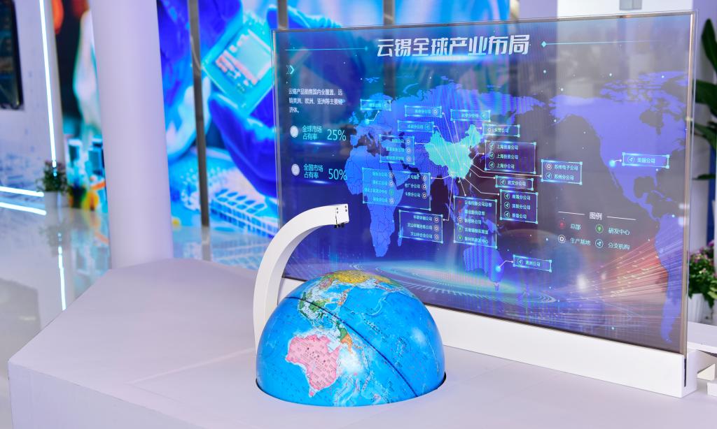 “錫銦創新之城”智能沙盤以AI算力驅動模組為中“芯”,互聯電子信息、智能生活、新型能源、軍工航天等七大終端應用模塊,具象化體現錫銦金屬“國之所需、無可替代;民之所用、無處不在”的特點。