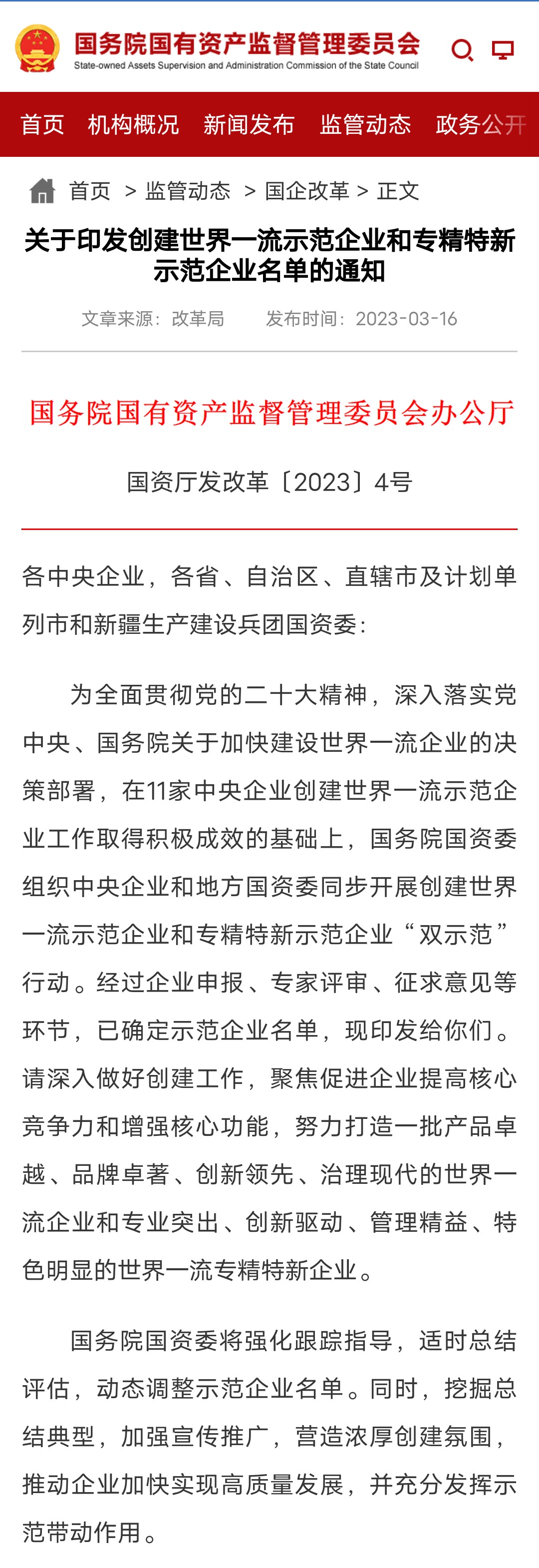 鏈接:http://www.sasac.gov.cn/n2588030/n2588924/c27463163/content.html