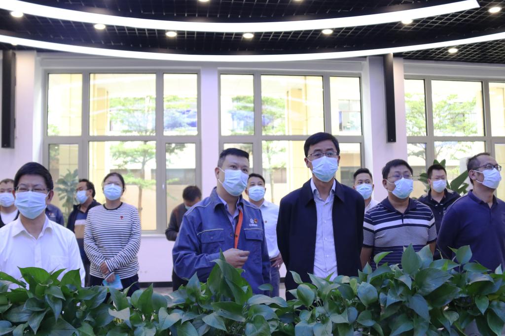 在錫冶煉智慧管控中心,調研組觀看了錫冶煉企業宣傳片,觀摩了錫冶煉數字孿生、三維可視化三位一體系統應用演示。并圍繞世界“五個之最”詳細了解錫冶煉產能規模、技術裝備、節能環保、數字化建設、綜合效益的相關情況。