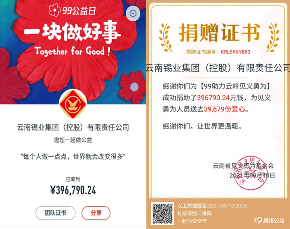 云錫募捐39.679萬元助力“99云嶺見義勇為”公益項目