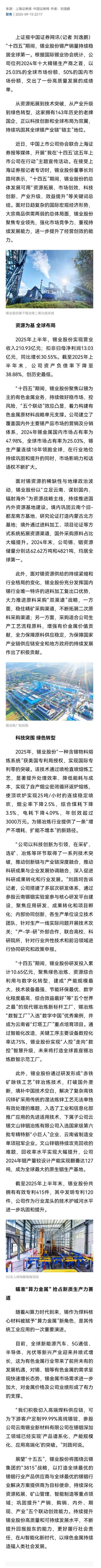 中國證券網:錫業(yè)股份——科技突圍 奔赴“綠色智造”新征程