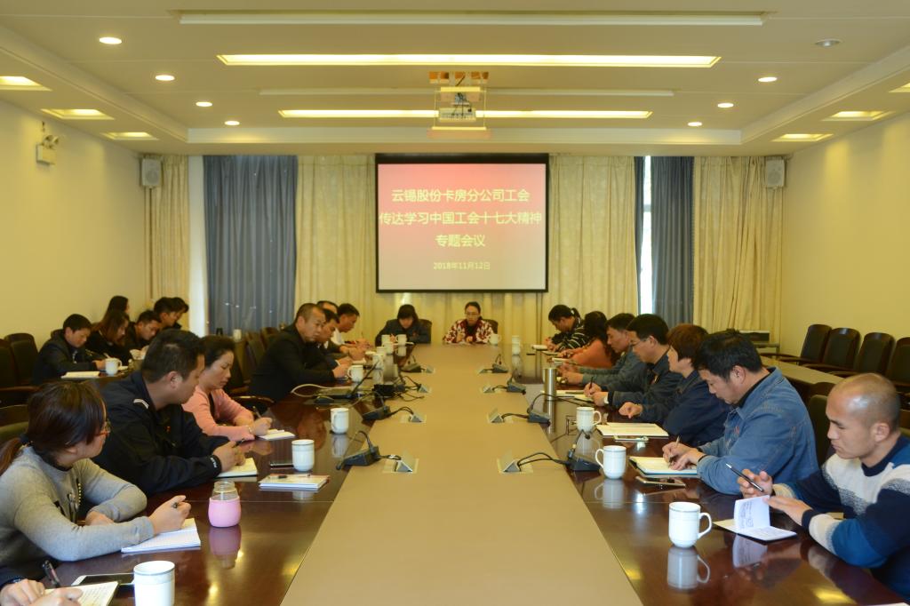 11月12日下午,卡房分公司工會召開學(xué)習(xí)中國工會十七大會議精神專題會,各部門工會主席、部門工會委員、群工部干事37人參加會議