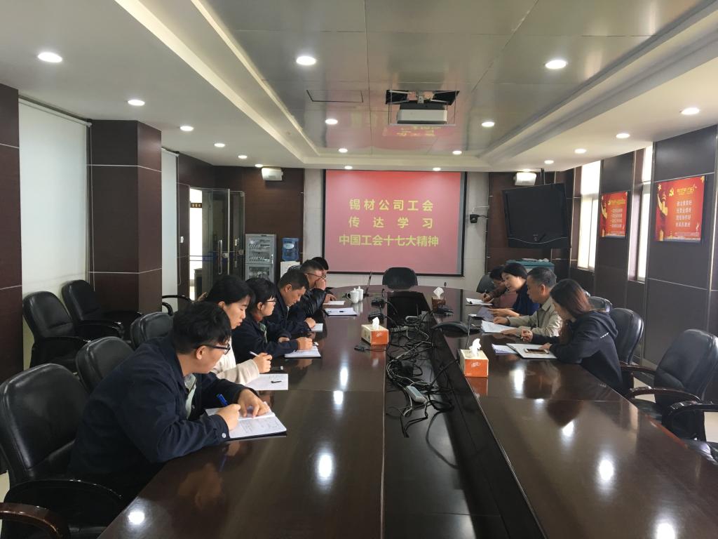 11月9日,錫材公司工會召開工會干部會議傳達(dá)學(xué)習(xí)中國工會十七大精神。