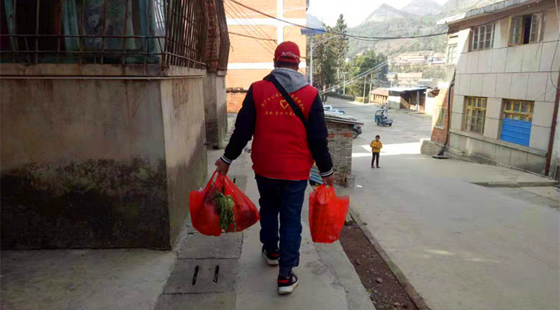 志愿者向自覺隔離觀察職工送物資