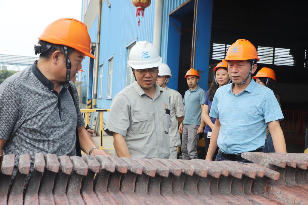 調研組觀看了銅業分公司宣傳片,重點參觀了熔煉和電解系統的運行情況。在主廠房前,陳鋼詳細介紹了銅精礦原料結構、進口礦的主要來源、礦料入爐品位、產出的陽極板品質如何、陰極銅和金銀等產品的純度和銷售等情況。