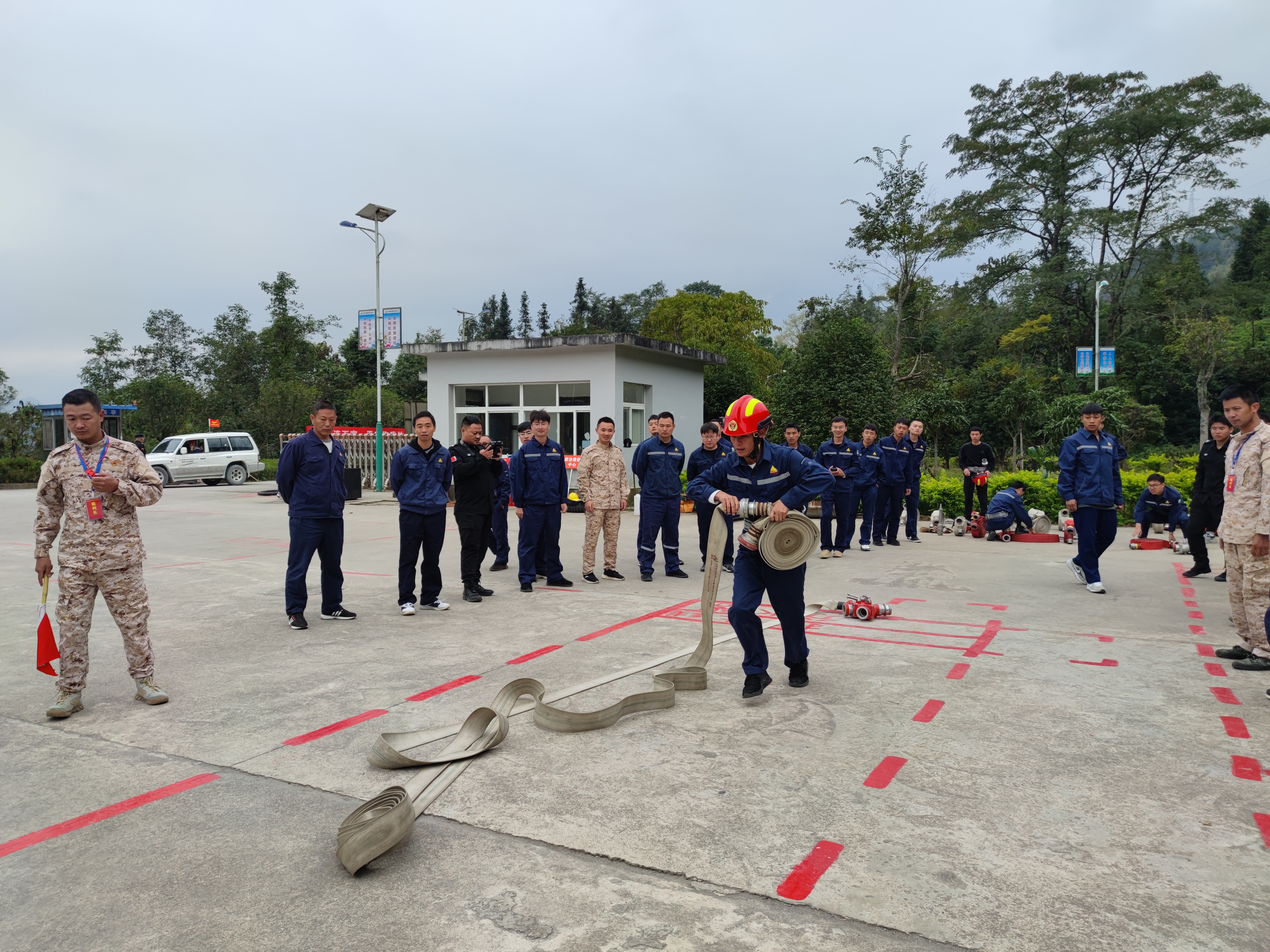 11月9日,華聯(lián)鋅銦在新田選礦車間訓(xùn)練場組織開展“11·9”消防技能比武競賽,由各基層工會(huì)48名職工組成的8支專(兼)職消防應(yīng)急救援隊(duì)參賽。