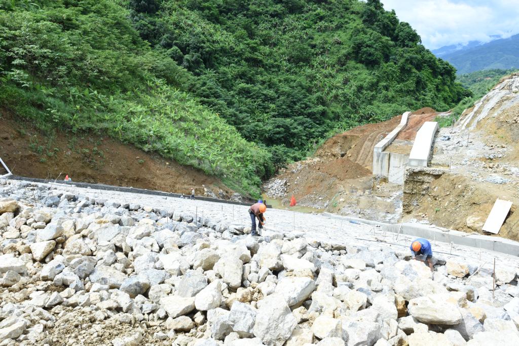 為確保園區(qū)項目能順利完工,園區(qū)指揮部及施工單位全體工作人員實行7×24小時工作制;按照中央、云南省環(huán)保督察組提出的重點工作倒排施工計劃,具體細(xì)化到每周必需完成的工程量;將每月一次的指揮長會議改為每周一次的現(xiàn)場推進(jìn)會,跟進(jìn)每周的工作計劃和項目進(jìn)度。軸線長170米的初期壩體碾壓堆填需70萬立方米石碴,指揮部決定就近取材南部園區(qū)的剝離石料。經(jīng)過飽和抗壓強度、軟化系數(shù)檢測、碾壓實驗選擇最佳的鋪筑厚度和碾壓參數(shù);壩體砌筑過程中,項目部隨時對質(zhì)量進(jìn)行檢測,以確保壩體結(jié)構(gòu)安全。監(jiān)理公司、參建單位、項目負(fù)責(zé)人每天現(xiàn)場巡查石料是否含泥超標(biāo)或是塊狀過大,發(fā)現(xiàn)問題立即停工,把含泥超標(biāo)的石料進(jìn)行清水沖洗,大塊石材返回加工。雖然時間上影響了工期進(jìn)度,但監(jiān)理方、施工方都秉承一個原則:決不讓不合格石料填筑到大壩上!