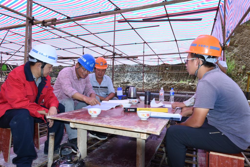 他們掐著時間和雨天賽跑,加快“活要干在下雨前”的步伐。在建設(shè)庫內(nèi)排洪隧洞時,由于電力不足影響施工,項目部的兄弟們自發(fā)去幫助架接電纜,在傾盆爆雨中一人打傘,一人挖坑,時不時還摔上一跤,等到電纜接好時大家都成了泥人。